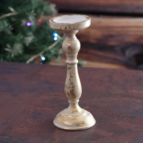 QX-IMPEX KFT Karácsonyi antikolt gyertyatartó fehér-arany színben, 26 cm karácsonyi dekoráció 1 kép