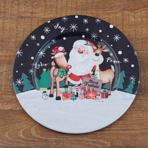 QX-IMPEX KFT Karácsonyi rénszarvas mintás tálaló tálca, 33 cm