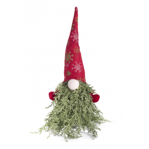 Karácsonyi orrmanó, zöld tuja szakállal és arany sapkával. méret: 36cm
