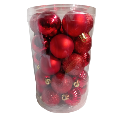 Piros műanyag gömb válogatás, 4cm. 34 db/ csomag.