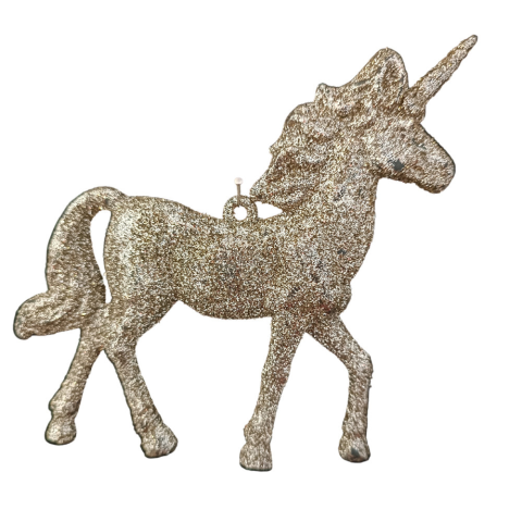 Unikornis karácsonyfa dísz, arany színben. A csomag 2db unikornist tartalmaz. Mérete:11x 12cm.