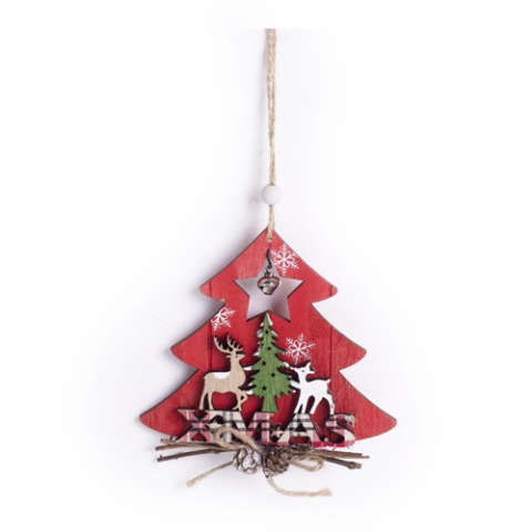 1 kép    Qx Karácsonyi dísz fa fenyő rénszarvassal akasztóval piros