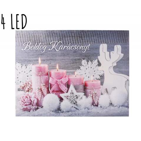 1 kép Qx Kép+4Led Boldog Karácsonyt Fehér /Rózsaszín