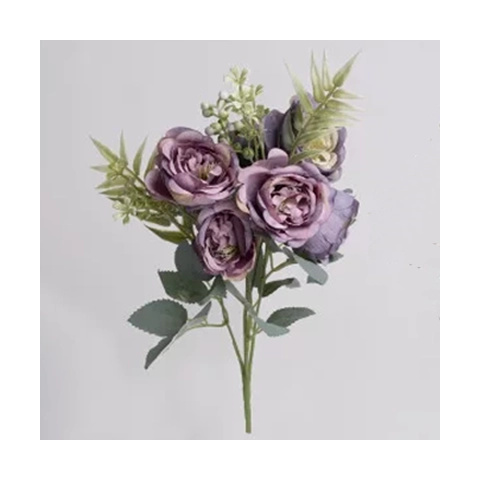 Qx Művirágcsokor, rózsa 30cm 7 virágfej, 5 ág lila