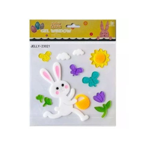 Qx Nyuszi kosárral ablakzselé - 20 x 25 cm party kellék 1 kép
