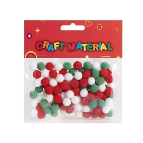 - 120 db textilgolyó - Élénk színek: piros, zöld, fehér - Alkalmas kézműves projektekhez - Fejleszti a finommotorikát és a kreativitást