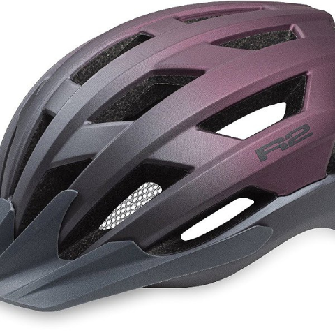 Kerékpáros sisak -, MTB sisak, mérete S 52 - 55 cm fejkerülethez, Double-Inmold technológia, rözítés rögzítő klip segítségével, EN 1078 minősítés, konstrukció anyaga polikarbonát és EPS, hely a szemüvegnek, szellőzőnyílások és forgókerék a méret beállításához a felszerelés része, eltávolítható napellenző, levehető párnázás, párnázás anyaga molitan, tömege 220 g, lila és szürke kivitel Ha városi bringázást, vagy terepen történő biciklitúrát