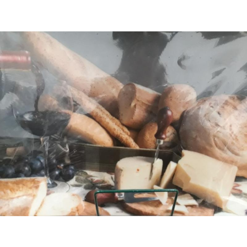 Reggeliző alátét gusztusos kenyér-csendélet díszítéssel. Anyaga: műanyag, mérete: 45X30 cm. Olasz termék.