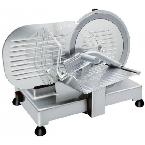 Festett alumínium alap, mely érintkezhet élelmiszerrel a késvédő, az élelmiszer-tálca, és a mozgatható védőfal oxidált alumíniumból készült professzionális szellőztetett motor, a felmelegedés gátlására és a zaj csökkentése érdekében a pengét tartó tengely dupla golyóscsapágyra szerelt edzett, krómozott professzionális penge, mely jobban tartja a vágási hatékonyságot. - Kés átmérője: 250 mm - Vágási kapacitás: 230 x 180 mm - Szeletvastagság: