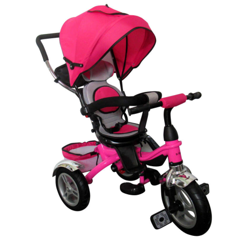 R-Sport 360°-ban fordítható Tricikli tolókarral és felfújható kerékkel - rózsaszín tricikli 1 kép