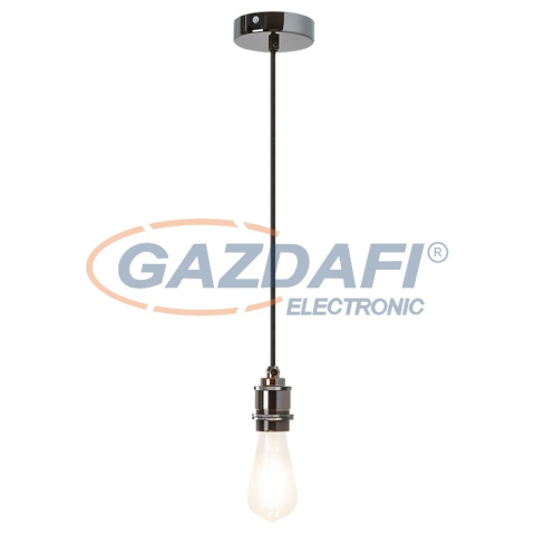 Indusztriális stílusú függeszték 1 db foglalattal. 80 cm lelógású, fekete színű fém szerkezet és foglalat, szövött ’vasalókábel’ vezetékkel. A függeszték E-27-es foglalatú, max. 40W teljesítményű energiatakarékos fényforrással, így akár a különleges megje
