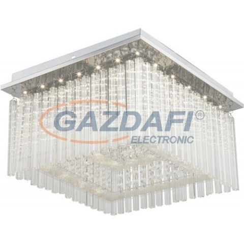 Exkluzív megjelenésű, modern stílsusú mennyezeti lámpa beépített energiatakarékos LED fényforrással. 36 cm széles, króm színű, fémből készített test, üveg és akril lámpabúra, . A beépített LED fényforrás A+ energiaosztály besorolású és 21W teljesítmény me