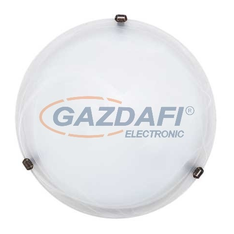 40 cm átmérőjű, hagyományos stílusú mennyezeti lámpa, fém és műanyag szerkezettel, kiváló minőségű, vastag, fehér alabástromüveg lámpabúrával, bronz színű rögzítő körmökkel. 2 db E27-es foglalatban maximum 2x 60W teljesítményű, halogén vagy LED fényforrás