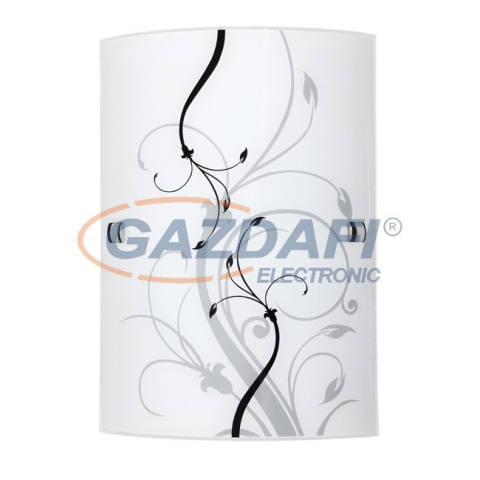 26 cm magas és 18 cm széles modern stílusú fali lámpa. Fém szerkezet fehér domború opálüvegen fekete-fehér mintával. E27-es foglalatú, maximum 60W teljesítményű, halogén vagy LED fényforrással is használható.RÁBALUX 3691 általános leírása:A lámpatestek tí