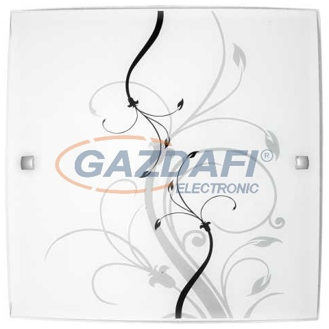 30 x 30 cm-es, romantikus megjelenésű mennyezeti lámpa. Fém szerkezet fehér domború opálüvegen fekete-fehér mintával. E27-es foglalatú, maximum 60W teljesítményű, halogén vagy LED fényforrással is használható.RÁBALUX 3692 általános leírása:A lámpatestek t