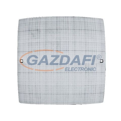 40 x 40 cm-es, időtlen stílusú mennyezeti lámpa. Fém szerkezet, vonalas mintájú, fehér domború kialakítású opálüveg lámpabúrával és króm színű díszcsavarokkal, 2 darab E27-es foglalattal. A lámpatest maximum 2x 60W teljesítményű, halogén vagy LED