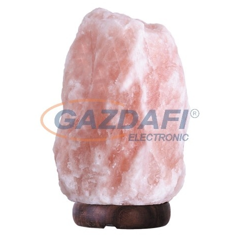 Természetes kősóból készített, hangulatvilágításra alkalmas sólámpa körülbelül 20-25 cm-es magassággal és 15-18 cm-es átmérővel. A narancsos színű, fa talapzatú, hálózati vezetékkel és kapcsolóval ellátott dekor lámpa 1 darab E14-es foglalatú, 15W teljesí