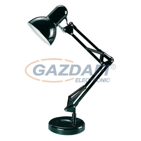 Megfelelő asztali megvilágítást biztosító asztali lámpa állítható karral és fejjel, 49 cm-es magassággal, fekete színben. Fém alapanyag, tartós kivitel, IP20-as védettség. A lámpatest E27-es foglalatú, maximum 60W teljesítményű halogén vagy energiatakarék