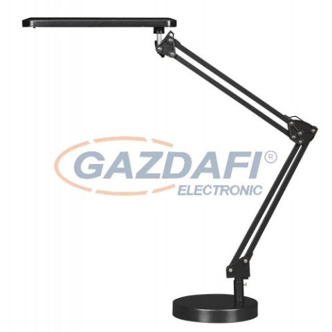 Modern megjelenésű asztali lámpa beépített energiatakarékos LED fényforrással, állítható karral és fejjel, max. 50 cm magassággal, fekete színben. Fém lámpatest és műanyag lámpabúra, tartós kivtelben. A beépített fényforrás A energiaosztály besorolású és