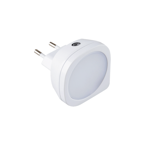 Konnektorba helyezhető, alkonykapcsolós éjszakai irányfény, okos világítás beépített energiatakarékos LED izzóval. 5 cm széles, fehér színű műanyagból készített szerkezet IP20-as védettséggel. A lámpatestbe beépített LED izzó teljesítménye 0.5 W, amelyhez 2 lumen fényerő társul. Színhőmérséklete melegfehér (2700 Kelvin). A lámpatestben a izzó nem cserélhető.