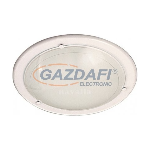 Időtlen megjelenésű, fém és üveg kombinációjú mennyezeti lámpa, 1 darab E27-es foglalattal. 28.5 cm átmérőjű, fehér színű fém lámpatest, fehér színű opálüvegbúrával. A lámpatest E27-es, max. 60W teljesítményű energiatakarékos fényforrással is használható.