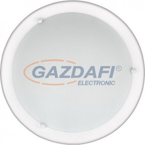 Időtlen megjelenésű, fém és üveg kombinációjú mennyezeti lámpa, 2 darab E27-es foglalattal. 38 cm átmérőjű, fehér színű fém lámpatest, fehér színű opálüvegbúrával. A lámpatest E27-es, max. 60W teljesítményű energiatakarékos fényforrásokkal is használható.