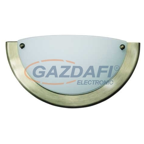 Időtlen megjelenésű fali lámpa bronz színű, fém lámpatesttel és fehér színű üveg lámpabúrával, 31 cm-es szélességggel. A lámpatest E27-es foglalatkilakítású, max. 60W teljesítményű, halogén vagy energiatakarékos fényforrással is használható.RÁBALUX 5263 á