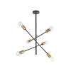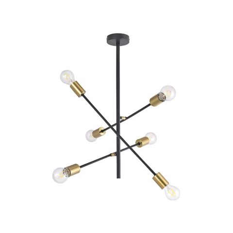 A Lanny Rábalux 2104 függesztett lámpa hat E27-es foglalattal rendelkezik, amely lehetővé teszi különböző típusú, cserélhető fényforrások alkalmazását. A lámpatest art deco stílusú kialakítást kapott, fekete és arany színkombinációval, amely fém anyagának