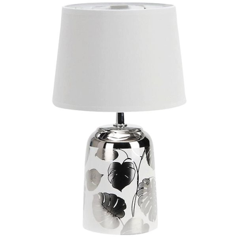A Sonal Rábalux 4548 levél mintás asztali lámpa 30 cm magasságban, modern stílusban készült, fehér és ezüst színkombinációval. A lámpatest kerámia és textil anyagokból áll, átmérője 18 cm, tömege 0,6 kg. Egy darab E14 foglalattal rendelkezik, amelybe cser