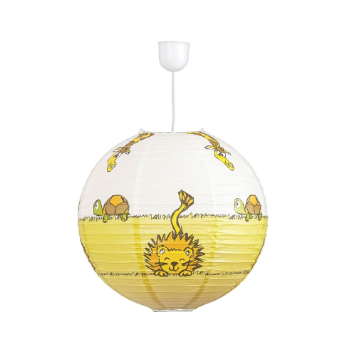 Az Oroszlános függesztett lámpaernyő gyerekszobába, a Leon Rábalux 4633 modell, egy könnyű, 0,08 kg tömegű, színes papírból készült lámpaernyő, amely kizárólag lámpaernyőként funkcionál, a függesztett lámpatest nem tartozéka. A termék átmérője 400 mm, véd