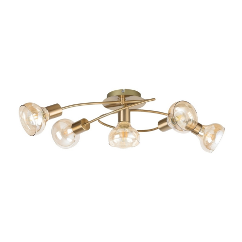 A Holly Rábalux 5552 mennyezeti lámpa modern stílusban készült, öt darab E14 foglalattal rendelkezik, amelyek cserélhető fényforrásokkal szerelhetők fel. A lámpatest anyaga fém és üveg, arany és borostyán színkombinációban. A termék méretei: hossza 180 mm