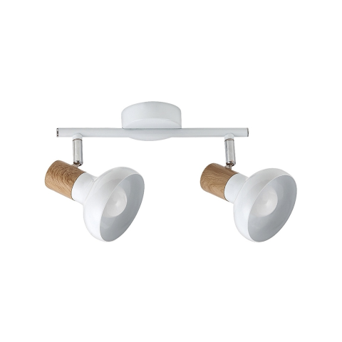 A Holly Rábalux 5944 mennyezeti spot lámpa modern stílusú, két E14-es foglalattal rendelkező világítótest, amely lehetővé teszi cserélhető fényforrások használatát. A lámpatest fehér és fa színkombinációban készült, anyaga fém, amely tartósságot és esztét