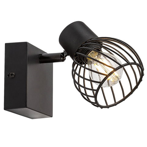 Az indusztriális stílusú Aberama egyes fali spotlámpát elsősorban a nappaliba vagy a hálószobába ajánljuk. A fekete színben, teljes egészében műanyagból készült modellt gömb alakú, alul nyitott rácsos búra egészíti ki és négyzet alakú dísztalp segítségével rögzíthető a falra. A mozgatható lámpafejnek köszönhetően a lámpa fényét tetszés szerint irányíthatjuk. Az Aberama egy darab legfeljebb 10 W teljesítményű fényforrással használható, a foglalat