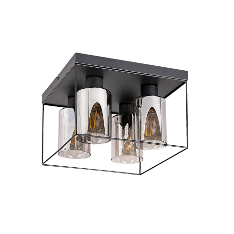 A modern stílusú Chadwick négyes mennyezeti lámpa a nappali berendezésének hangulatos darabja lehet. A fémből készült fekete színű lámpát henger alakú színezett üvegbúrák egészítik ki, amelyek meleg tónusokkal töltik meg a lámpa belsejéből kiszűrődő fényt. A Chadwick nagyméretű, négyzet alakú dísztalp segítségével rögzíthető a mennyezetre, amelyhez egy szögletes külső búra kapcsolódik. A lámpa négy darab, egyenként legfeljebb 25 W teljesítményű