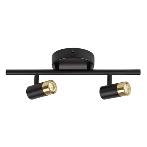 A Rábalux Kadir kettes fali lámpát azoknak ajánljuk, akik a letisztult formavilágot eleganciával ötvöző modellt keresnek. Ez a LED lámpa az indusztriális stílus jegyében fogant fekete és arany színű, hengeres testtel és átlátszó műanyag búrákkal. A dísztalp kerek formával, fekete színben készül, és vízszintes rúd kapcsolódik hozzá. Ez tartja a dísztalptól jobbra, illetve balra elhelyezkedő két, lefelé néző lámpafejet. A falikar kapcsolóval rendelkezik, v