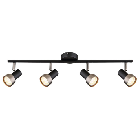 Az indusztriális stílusú Konrad négyes mennyezeti spotlámpát elsősorban a nappaliba vagy a hálószobába ajánljuk. A matt fekete színben, teljes egészében fémből készült modellt ezüstszínű búrák egészítik ki és kisméretű kerek dísztalp segítségével rögzíthető a mennyezetre. A dísztalphoz erősített hosszú tartórúdon sorban, egymás mellett helyezkednek el a mozgatható lámpafejek, amelyeknek köszönhetően a lámpa fényét tetszés szerint irányíthatjuk