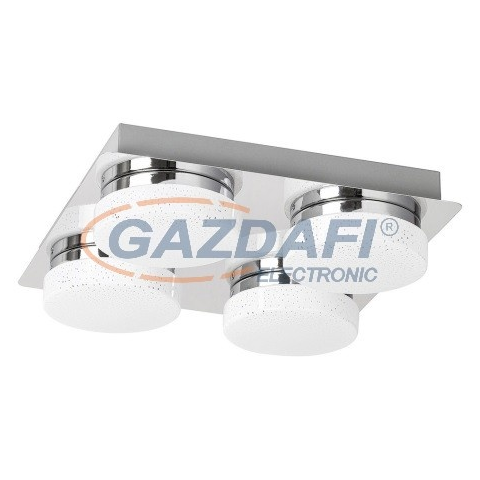 A csillogó effekttel készült Hilary négyes mennyezeti lámpa elegáns és hangulatos kiegészítője lehet modern nappalink vagy hálószobánk berendezésének. A fémből és műanyagból készült spotlámpa króm színű testét opál búrák egészítik ki, melyek alatt négy da