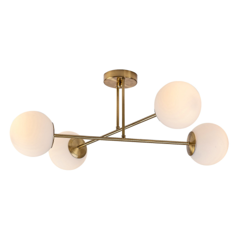 A Kiara Rábalux 71082 mennyezeti lámpa modern stílusban készült, 4 darab E27 foglalattal felszerelve, amelyek cserélhető fényforrást támogatnak. A lámpatest fő anyaga fém, a búrák üvegből készültek, így tartós és elegáns megjelenést biztosít. Az arany és