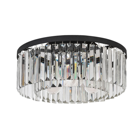 Az Eloisa Rábalux 71093 mennyezeti lámpa glamour stílusban készült, amely modern megjelenést és eleganciát kölcsönöz a helyiségnek. A 40 cm átmérőjű lámpatest fekete és áttetsző színű fém és üveg anyagokból áll, így különleges fényhatást biztosít. Három d