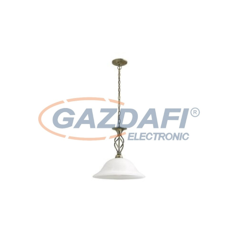 Klasszikus megjelenésű csillár 1 db foglalattal. 100 cm kinyúlású, 40 cm átmérőjű, bronz színű fém lámpatest fehér színű alabástromüveg lámpabúrával. A lámpatest E-27-es fogalatkialakítású, max. 60W teljesítményű fényforrással használható.RÁBALUX 7136 ált