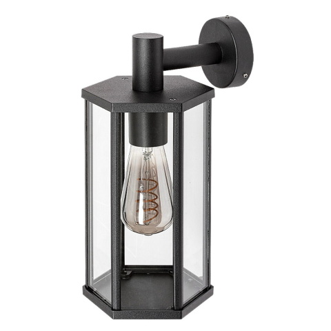 A lefelé világító Dubrovnik kültéri fali lámpa a klasszikus stílust képviseli. Az alumíniumból készült matt fekete lámpatestet hatszögletű átlátszó üvegbúra és kisméretű, kerek dísztalp egészíti ki. A lefelé csüngő lámpafej a dísztalpból kinyúló vízszinte