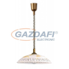 Időtlen megjelenésű, állítható lelógású függeszték 1 db foglalattal. Maximum 120 cm lelógású, 40 cm búraátmérőjű, barna színű lámpatest fehér alapszínű, barna és arany mintás alabástromüveg lámpabúrával. A lámpatest E-27-es foglalatú, max. 60W teljesítmén