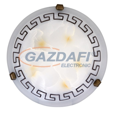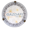 Mediterrán, mégis időtlen stílusú mennyezeti lámpa festett búrával. Fém lámpatest 1 darab E27-es foglalattal, festett, görög mintás opálüvegbúrával, bronz színű rögzítőkörmökkel, 30 cm-es átmérővel. A lámpatest E27-es foglalatú, max. 60W teljesítményű hal