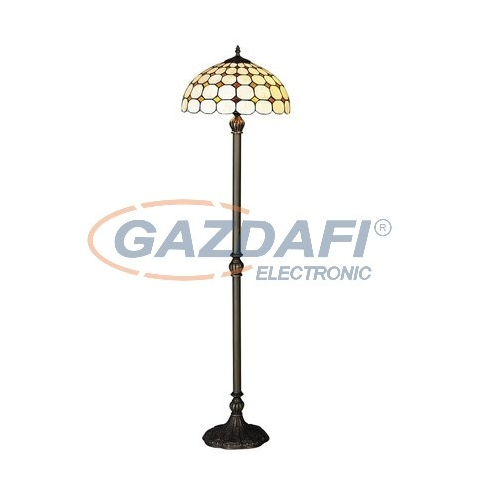 Klasszikus megjelenésű, Tiffany lámpabúrás állólámpa 2 db foglalattal. 148 cm magas, 40 cm átmérőjű, bronz színű fémből készített lámpatest színes Tiffany-stílusú üveg lámpabúrával, IP20-as védelemmel. A lámpatest E-27-es foglalatú, max. 2x 60W teljesítmé