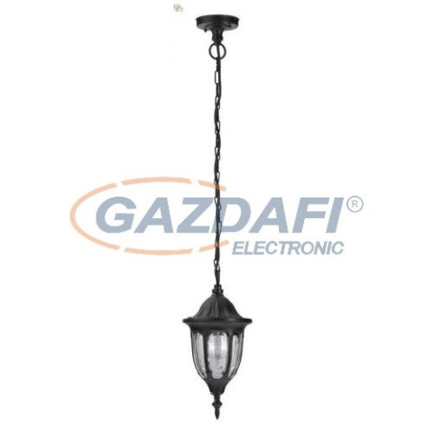 Klasszikus megjelenésű kültéri függeszték 1 db foglalattal. 100 cm lelógású, 16,5 cm átmérőjű, fekete színű, fémből készített lámpatest és üvegbúra, IP43-as védettséggel. A lámpatest E27-es foglalatú, max. 60W teljesítményű fényforrással használható.RÁBAL