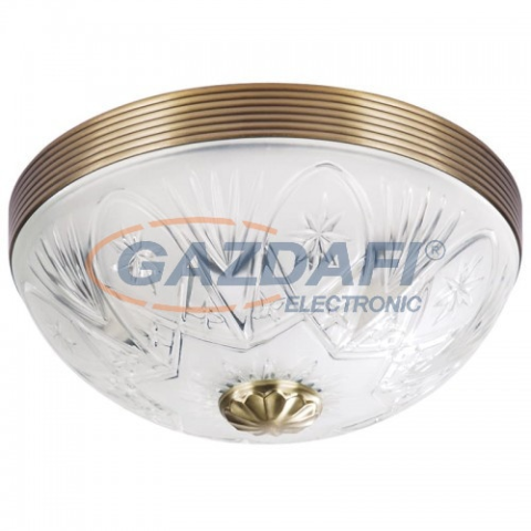 Klasszikus megjelenésű mennyezeti lámpa 2 db foglalattal. 32 cm búraátmérőjű, bronz színű fém lámpatest és aprólékosan kidolgozott üveg lámpabúra. A lámpatest E27-es foglalatú, max. 2x 60W teljesítményű energiatakarékos fényforrásokkal is használható.RÁBA