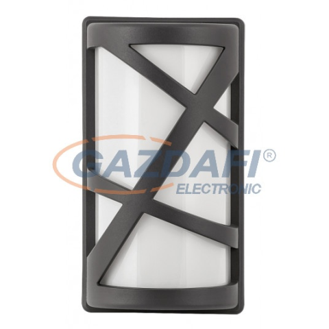 Modern megjelenésű kültéri fali lámpa, UV sugárzásnak ellenálló kivitelben, IP54-es, azaz por és fröccsenő víz elleni védelemmel. A 26,7 cm magas, 14,6 cm széles, antracit szürke színű fém házból és műanyag lámpabúrából összeállított lámpatest E27-es fogl