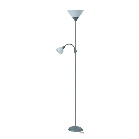 A Rábalux 4028 Action mennyezetvilágító állólámpa ezüst színben, modern stílusban készült, 178 cm magassággal. A lámpa két különálló foglalattal rendelkezik: egy E27 és egy E14 típusúval, így egyaránt alkalmas általános világításra és olvasófény biztosítá