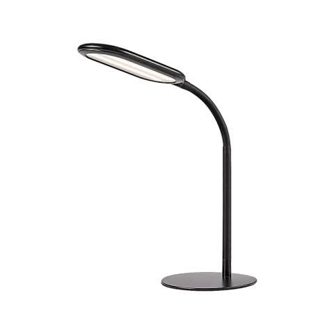 Az Adelmo asztali lámpa egyszerű, letisztult formatervezésének, valamint extra funkcióinak köszönhetően remek választás lehet bármely modern dolgozószoba íróasztalára. A fémből, fekete színben készült modellt karcsú, ívesen hajlított szár és egészen lapos kialakítású lámpafej jellemzi, amely oldalról szinte a szár egyenes meghosszabbításának tűnik. A lámpát fehér műanyagbúra és kerek dísztalp egészíti ki. Az Adelmo beépített LED fényforrással rend