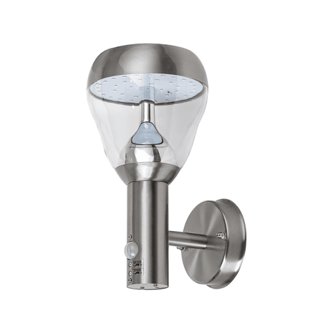 A mozgásérzékelővel ellátott Amalfi kültéri fali lámpa remek választás, ha hagyományos stílusú, egyszersmind mutatós lámpát keresünk a teraszra vagy a ház külső falára. A szatin króm színű lámpa rozsdamentes acél testét átlátszó műanyag búra egészíti ki, a falra való rögzítés kis méretű, kerek dísztalp segítségével történik. Az Amalfi beépített LED fényforrással rendelkezik, amely természetes fehér fényt sugároz. A fényforrás teljesítmény
